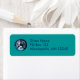 Världsfredssymbol på teal returadress etikett