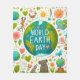Dagens moderna världsmeddelande om jorden med tecknad av djur, hjärtan och jordglobsikon.