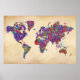 World map, flerfärgad. Åtgärdsmålning av stäng.