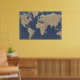 Världskarta för guld och blått poster