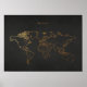 Världen. En världskarta över Guld överlagrades på en svart, betongad, texturerad bakgrund. Omfattar all nation gräns.