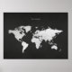 Världen. En världskarta över en svart betongbakgrund i Silver. Omfattar all nation gräns.