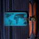 Världskarta över blått vintage bagagebricka