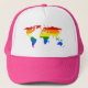 Truckerkeps med hbt-regnbåge (lesbisk, homosexuella, bisexuella och transpersoner) karta i världen, utformning av regnbåge för pride, med pinkbrickroad