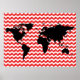 världskarta över röd schevron mönster poster