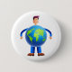 Gullig begreppsillustration av en man med ett världsjordklot för en förkroppsliga. Kunde föreställa att han reser ett lott eller fungerar på internet eller kanske han är en mycket worldy man som Etc. avbildar tillgängligt på olika gåvor och produkter.
