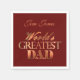 Världsmästare Pappa Elegant Faux Metallic Red Copper Lopography on Mörk Red Background Add Namn Fars dag or Födelsedagsfest Pappa, Napkins, Napkins