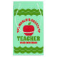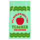 Personligens läraruppskattning av en liten presentväska med ett vattenfärgat rödäpple med grönt löv, det söta ordspråket "den världsmästare läraren" och deras namn.