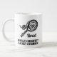 Världsmästare tennis racket stringer extra stor Giant Coffee Mugg. Strängdesign för Racket och boll. Roligt för spelare, buss, butik, affärsägare, butik. Sporty Birthday-presentidéer för manar och kvinnor. Lägg till din egen personlig namn. Extra stor jumbo storleka mugg. Svart och vit dubbla vid utskrift.