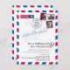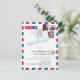 Ett roligt kreativt Bröllop Spara datum för att skicka till alla dina gäster som tillkännager ditt destinationbröllop. Distressed Flygpost-design i rött och blått med karta över USA. Två hjärtan på platsen för UTAH (USA) och ITALIEN som förbinder dem. Lägg till tre av dina favoritfoton för frimärkena. Om du har en annan plats, vänligen meddela mig så sätter jag upp en för den platsen. epost paula@labellarue.com