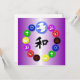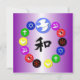 På en skuggad lila, som symboliserar lugn och lugn, har vi har flera av symbolerna för världens största religioner - hinduism, buddism, Taoism, judendom, kristendom och islam - i en cirkel med fredsduvan och olivduken gren över hela den. Vi har också lagt till den kinesiska symbolen för Harmony i mitten i en rik, bläck svart.