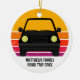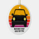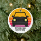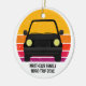 Cool anpassad vägresa julgransprydnad för en vårledighet eller sommarlovs souvenir för din familj eller vänner. Personifiera med efternamn eller grupp ovanför den retro solnedgången och siluetten av bilen. Perfekt souvenir för en resa till en stuga eller tvärs över landet. Kör iväg in i solnedgången.