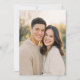 Denna bröllopsinbjudan har en varm och intim design med två individer som står tätt ihop och ler i en utomhusmiljö under solnedgång eller soluppgång. Färgpaletten domineras av jordnära toner i beige och kräm, kompletterat med det naturliga solljusets gyllene nyanser, vilket skapar en mjuk och inbjudande atmosfär. Den fotografiska stilen fångar realistiska detaljer och betonar äkta känslor och kontakt mellan subjekten. Den lediga klädstilen bidrar till den avspända känslan, vilket gör den perfekt för par som söker en hjärtlig och tilltalande estetik för sin speciella dag.
