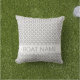 Klassiskt Warm Grått och Vita små geometriska cirklar mönster utanför dörrkuddar med modern minimal Boat Namn Typografi. Det traditionella japanska Shippo mönster hänvisar till buddismens sju skatter. Den ger kraft, koncentration och samspel mellan olika inslag, en perfekt dekoration för havsområden utanför säten, mellan olika parter och däck. #ybeedesign #ybeesea #graygeometricpatternleder #graygeometriccirclesönmönster Patio Däckedekorationsidéer gjorda med oceanen kärlek © Design y.BEE SEA