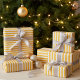 Anpassadets gåva som omsluter papper visar helig gult och vitt rand. Denna mångsidiga figursättning är perfekt för födelsedagar, gåvor till uppvärmning i hemmet, lärarbedömningsdag eller något särskilt tillfälle. © Wafa Y. Dahdal - Med förbehåll för alla Höger.