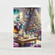 Träd in i den mysiga charmen i ett vackert dekorerat vardagsrum för högtiderna. Detta tomma kort fångar årstidsvarmheten med ett lysande julgran, strumpor som hänger vid öppen spis och mjuka ljus som sprider en välkomnande glöd. Perfekt för att skriva och skicka hjärtliga hälsningar och sprida julglädje till familj och vänner.