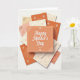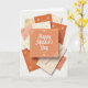 Det här kortet centrerar kring en varm peach-orange fyrkant med en vit prickig kant, utsmyckade hörndetaljer och en hälsning i elegant vit textning nära mitten. Runt det är flera koordinerade pappersbitar utspridda och lite överlappande på en vit bakgrund, som en mysig skrivbordsmoment där någon noggrant arrangerat minnessaker för en nära och kära ❤️. De omgivande korten använder mjuka creme-, rosafärgade och terrakotta-nyanser, och deras fina mönster liknar spetsliknande krullar och botaniska virvlar. Vissa detaljer ser ut att vara lätt pressade i papperet, medan andra har en svag metallisk glans som fångar ljuset med en mjuk glimt. Små blomsteraccents, som torkade kronblad eller ömtåliga utklippta pappersblommor, sitter nära kanterna och hörnen och tillför en öm, genomtänkt touch 🌼. Belysningen är ljus men diffus och skapar mjuka skuggor mellan lagren så att arrangemanget känns intimt, som meddelanden som utbyts mellan nära vänner eller partners. Huvudhälsningen förblir i fokus, med den vita texten som sticker ut tydligt mot den peach-orange mitten medan