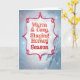 Fira den varma och mysiga årstiden med detta fantasifulla, lite retroaktiska julkort! Designen har lager av stiliserade vita, blå och mjukt rödaktigt rosa snöflingor som virvlar runt i en disig blå himmel och skapar djup och en drömsk vinterstämning. En funkig, moderniserad röd ram i kardinalstil sticker ut mot bakgrunden och framhäver klarröd text på krispigt vitt - med snöiga texturer som tittar fram bakom som en mild storm.