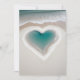 En hjärtformad bassäng i vatten med akvatiska huvar kapas i en sandstrand, omgiven av skumma vinkara. Havet möter stranden i bakgrunden och skapar en serene och romantisk scen.