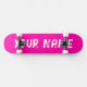 Skateboarddäck med en djärv varmrosa design och anpassningsbart namn utrymme. Perfekt för gatuskridskoåkning, trick eller som en rolig och personlig gåva för skateboardälskare.