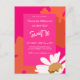 Anpassningsbar varm rosa och orange abstrakt med vit retro-stil daisy blomsterdesign. Födelsedagsfest inbjudan anpassningsbar med valfri ålder, namn och fest detaljer.