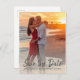 Det här Varm Skript Foto Spara Datumet-annonseringskortet har en elegant kalligrafisk typografi som är utformad för att komplettera ditt eget förlovningsfoto. En mjuk, varm överlagring förstärker solnedgångs-, strand- och gyllene timmes-bilder samtidigt som brölluppsdetaljer förblir läsbara och balanserade. Helt anpassningsbart med ditt foto, namn, datum och plats – perfekt för romantiska, kustnära eller sommarbröllop.