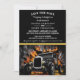 Varm stång fest eld Bröllop Spara datum-kort har en orange låga som brinner ut och runt en gammal bil. Längst ned i mitten och en svart bakgrund med en plats att lägga all din inbjudan text.