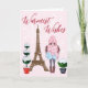 Det här vackra Pariskortet i helgdag har Eiffel Torn med en fullkomligt chic flicka som bär en scarf som lyder "Det är vinter Baby" bredvid några av snö täckta topiarier. Vita snöflingor faller i bakgrunden med monokromatiskt inslag med texten "varmaste Önskemål". Anpassa enkelt insidan av detta kort med ett meddelande om helgdag av anpassningsbar.