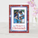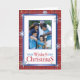 Skicka julhälsningar med detta eleganta vikta fotokort. Det har fallande snöflingor, röda och blå semesterkanter. Personifiera genom att lägga till ditt foto, namn, år och meddelande.