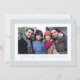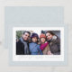 Inramad med flingor av snö är detta julkort med ett foto det perfekta sättet att önska god jul. Med en elegant modern versal "Varmaste önskningar" har detta kort även plats för anpassad text där du kan skriva namn och år. Baksidan har ett liknande flingor-mönster på en ljus vinterhimlens blå. Detta horisontella fotokort är perfekt för hälsningar som firar en mängd olika vinterhögtider. Finns även som en vertikal design.