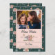 Illustration av ett rosa modernt hus i mitten av seklet dekorerat med julbelysning. Bakgrunden är mönstrad med godisbitar, hus, flamingos och snöflingor. Anpassa med ditt familjefoto.