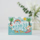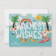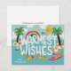 Roliga surfing tomten dras av sina simkostymklädda renar i det här roliga strandtematiserade julkortet. Här finns också klassiska dekorerade julpalmer och säsongsbetonade havsdjur.