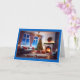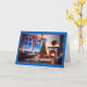 Framsidan av detta julkort är presenter en mysigt och elegant vardagslokal, mot bakgrund av en snövinter under vintern som är synlig genom stora fönster. Det varmtända insida har ett vackert dekorerat Julgran med glödande ljus och omgivet av nyinslaget presenter. Ett andetag med en stark röd bugg hänger över en kamrat, där en varm eld krackar, vilket ökar ambitionen. Rummet är smakligt dekorerat med mjuk, plusinering, inklusive en bekväm soffa med festiva röda kuddar som kompletterar temat helgdag. Den djupa blåa kvällen himmel och träd som täcks av snö är synlig utanför området för uppvärmning och bekvämlighet i insida. Kortets gräns är ett fet blått format, och ord "God jul" är skrivet i en elegant med svart och röd skrift vid grund, vilket ger ett muntert hälsning till utformningen. Detta kort fångar perfekt julens fredliga och glädjande anda och skapar det idealiskt för att skicka varmt önskemål till vänner och familj. Det är perfekt för dem som uppskattar klassisk och hemlig helgdag.