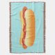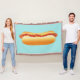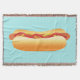 Denna filt har en läcker serieillustration av en varmkorvsmacka. Varmkorven har ett aptitligt bröd och det finns både ketchup och senap på toppen av korven.