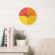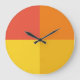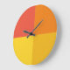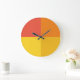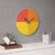 Varmbågsgeometrisk modern färg-blockväggklocka. Ruby Red, deep orange, senap och lemon gult fläkt över den vackra färg palettväggsklockan dekoration för att tala om tid och ge fläkt till ditt utrymme.