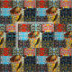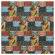 Rektangulärt lappar av loopy designer, och havssköldpaddabilder i varma färger mönstrar detta nätt tyg.