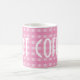 En komfortdryck i en mugg med tyget, som uthärdar för evigt, gingham.