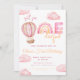 Denna drömlika första födelsedagsinbjudan har en rosa akvarell varm luftballong som svävar genom mjuka himlar, med ömtåliga nyanser av rodnad och pastell. Ett sött sätt att inbjuda nära och kära att fira din "underbara" flickas speciella dag.