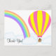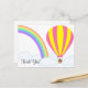 Ett vykort med en varmluftsballong, en regnbåge och en 'Tack!' text, på en vit bakgrund. Anpassa vykortet med din egen text, bakgrundsfärg, bland andra alternativ.