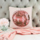 Varmt rosa diskoboll, flickig sovrumsaccent, retro kudde