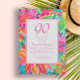 Djärv och färgrik varm rosa, orange och grön akvarellblomma 90-årsdag inbjudan för henne. Kontakta mig för hjälp med dina anpassningar eller för att begära ytterligare matchande eller samordnade Zazzle-produkter för ditt evenemang.