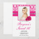 Varmt rosa rosor & Damask Diamant Bling Inbjudning Inbjudningar