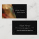 Sofistikerade unika professioneller i en variation av ska idérika branscher uppskattar denna visitkortdesign. Den bestås av av en fotografera på det vänstert, avsiktligt suddigt, i varmt tonar med stänk av färg. Röd och blått-grönt titt igenom från den guld- suddiga belysningen. Blått-grönten antyder av färg är en singelpåfågelfjäder under ljuset med glasflaskor som lätt reflekterar ljuskronan. På höger är en fast svart överdrar att snitt över fotoet i en diagonal vinkel. Vittext framlägger ditt namn och placerar. Baksidaen av kortet visar att din namn och kontakt specificerar i vit på en fast svart bakgrund.