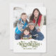 Varmt välkommen | Högtidskort med foto - Grön. Elke Clarke© Andra färger finns tillgängliga i vår butik på www.zazzle.com/epclarke. Snöflingor och virvlar och falsk snöeffekt gör denna mall till ett mångsidigt och lättanvänt kort för att lägga till ditt foto och efternamn. Enkel söt design för att skapa ditt eget unika högtidskort att skicka till familj och vänner.