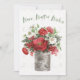 Rustik säsong IV | En silverbehållare är fylld med vackra röda och vita julblommor, grönska och bär. Sentimentet "Varmt vinterönskan" svävar ovanför buketten. | 57372HR
