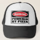 Att varna som DRIVAS AV PIZZAhatten kan presenterar du, skräddarsy på www.WarningSignShirts.com och ett rött, och svart varning undertecknar och DREV VID PIZZA i djärva svart brev för att varna världen. Du kan också skräddarsy din egna varning undertecknar hatten med texten som du önskar.