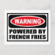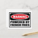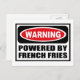 Varning POWERED BY FRANSK FRIES-vykort som du kan anpassa på www.WarningSignShirts.com och som innehåller en röd och svart varningsskylt och POWERED BY-FRANSK FRIES i fet svart brev för att varna världen. Du kan också anpassa ditt eget varningsskylt vykort med den text du vill ha.