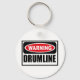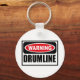 Varning DRUMLINE-Nyckelring som du kan anpassa på www.WarningSignShirts.com och som innehåller ett rött och svart varningsskylt och DRUMLINE i fetstilt svart brev som varnar världen. Du kan också anpassa Nyckelringen för egna varningsskyltar med önskad text.