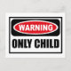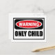 Varning BARA VID VÄNSTERKort för BARN som du kan anpassa på www.WarningSignShirts.com och som innehåller en röd och svart varningstecken och ENDAST CHILD i fet svart brev som varnar världen. Du kan också anpassa ditt eget varningsskylt vykort med den text du vill ha.