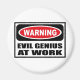 Varning EVIL GENIUS AT WORK Magnet som du kan anpassa på www.WarningSignShirts.com och som innehåller en röd och svart varningsskylt och EVIL GENIUS AT WORK i fet svart brev som varnar världen. Du kan också anpassa ditt eget varningsskylt Magnet med den text du vill ha.